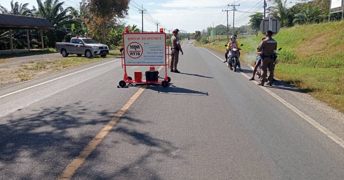 พ.ต.ท.ชาตรี พุธร้อย สว.สภ.เกาะกลาง สั่งการให้ ร.ต.อ.จารึก อินแก้วศรี รอง สวป.สภ.เกาะกลาง พร้อมเจ้าหน้าที่สายตรวจ และ เจ้าที่จราจร ตั้งจุดตรวจกวดขันวินัยจราจร การใช้รถใช้ถนนในพื้นที่