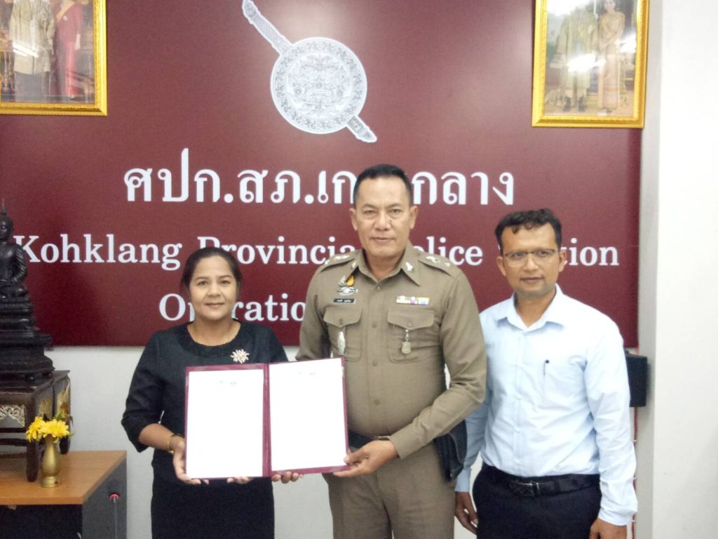 วันที่ 22 ธันวาคม 2566 เวลา 14.30 น.พ.ต.ท.ชาตรี พุธร้อย สว.สภ.เกาะกลาง พร้อมด้วย นางศิวนาถ เอ่งฉ้วน ผู้อำนวยการโรงเรียนคลองยางประชานุสรณ์ ร่วมกันจัดทำบันทึกข้อตกลงความร่วมมือ(MOU)โครงการสถานศึกษาสีขาว ปลอดยาเสพติดและอบายมุข ซึ่งได้เห็นชอบร่วมกันในการประกาศเจตนารมณ์เพื่อแก้ไขสถานการณ์การแพร่ระบาดของยาเสพติด การสูบบุหรี่/บุหรีไฟฟ้า และการบริโภคเครื่องดื่มแอลกอฮอล์ สื่อลามกอนาจาร การพนัน การทะเลาะวิวาท ที่เป็นภัยคุกคามต่อความมั่นคงและความสงบสุขของนักเรียนอย่างมีประสิทธิภาพและเป็นรูปธรรม
