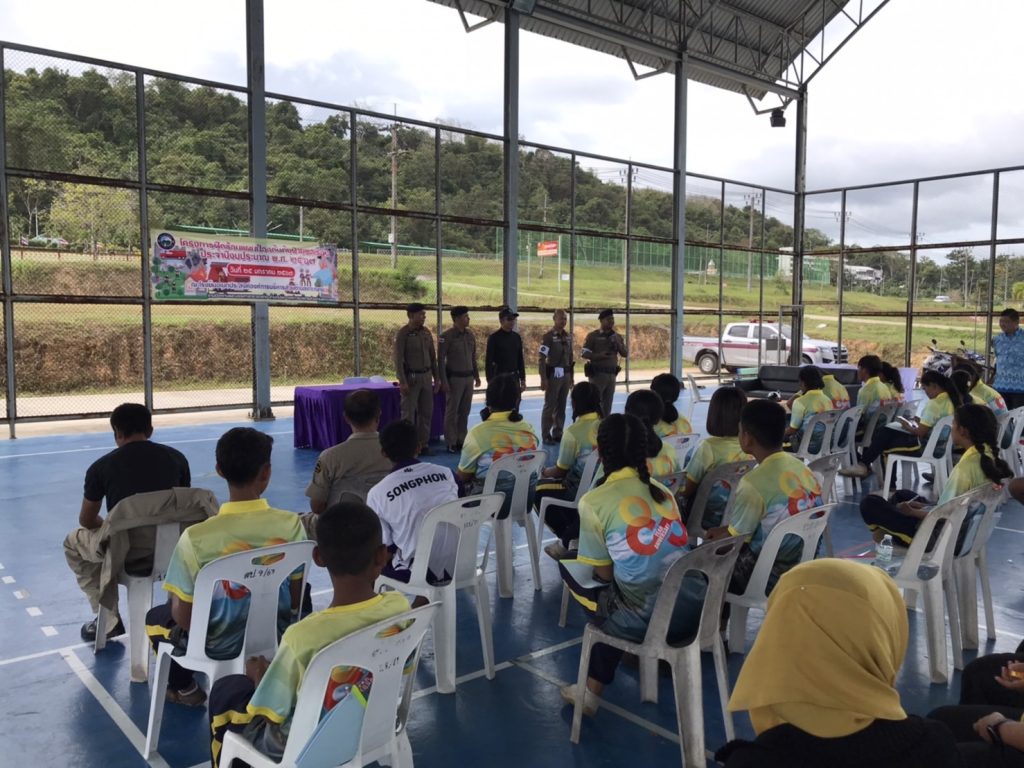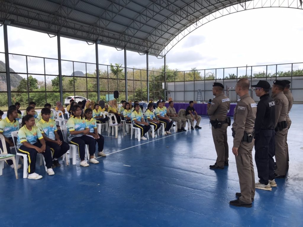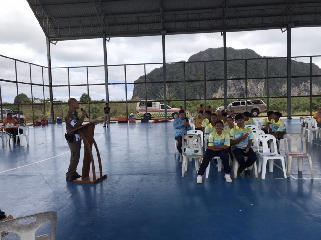 ร.ต.อ.จารึก อินแก้วศรี รอง สวป.สภ.เกาะกลาง พร้อมด้วยข้าราชการตำรวจ สภ.เกาะกลาง ร่วมบรรยายให้ความรู้ เรื่อง ทฤษฎี หนี ซ่อน สู้ ให้แก่นักเรียน ครู โรงเรียนบ้านร่าปู