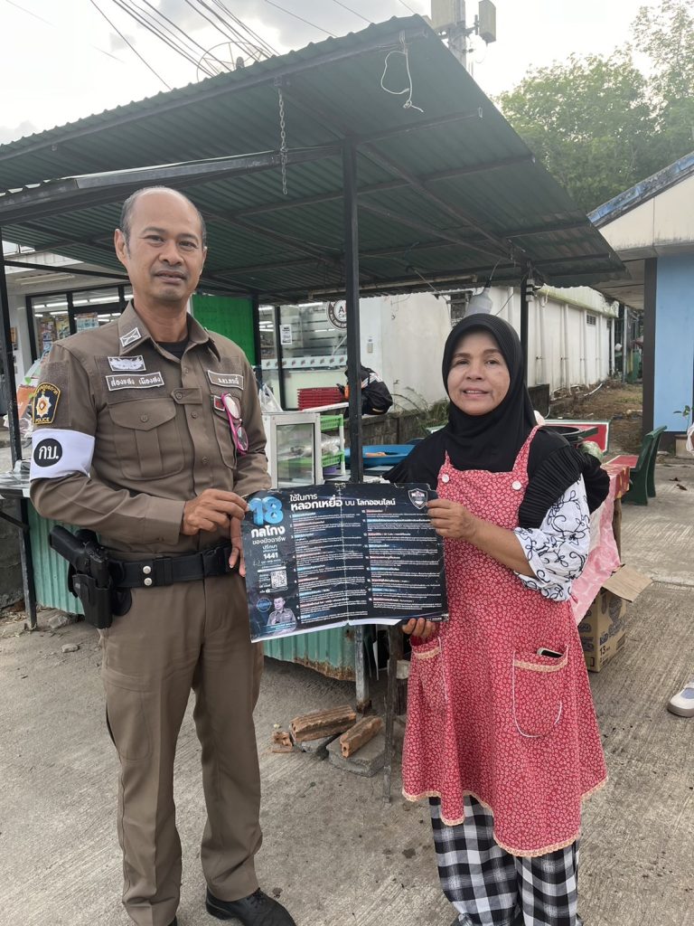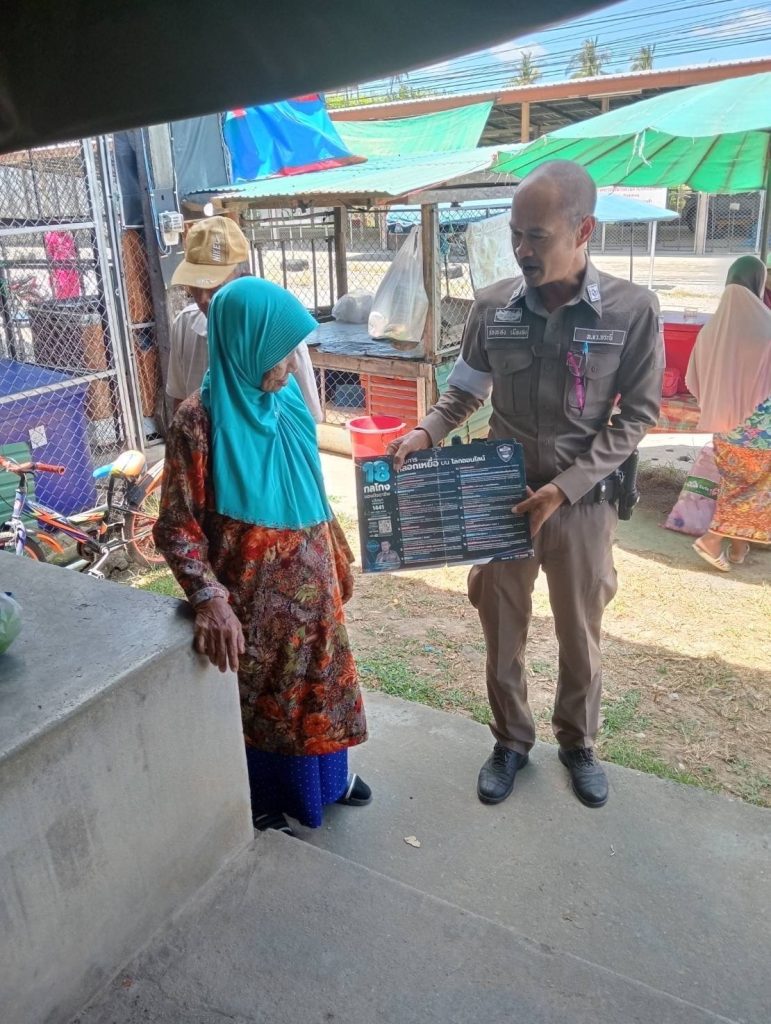 วันที่ 3 มีนาคม 2567 เวลา 15.00 น.พ.ต.ท.ชาตรี พุธร้อย สว.สภ.เกาะกลาง มอบหมายให้ ร.ต.ต.โยธิน สีขาว รอง.สว.(ป.) สภ.เกาะกลาง ร้อยเวรป้องกันปราบปราม พร้อมสายตรวจรถยนต์ และเจ้าหน้าที่ จราจร ตรวจเยี่ยมประชาชน ในพื้นที่รับผิดชอบ ตามโครงการ (Stop Walk & Talk) เพื่อดูแลความปลอดภัย และ ป้องกันการเกิดเหตุอาชญากรรมแก่ประชาชนใน และประชาสัมพันธ์การป้องกันปราบปรามและแก้ไขปัญหาอาชญากรรมทางเทคโนโลยี (กลโกงออลไลน์ 18 ข้อ) รวมทั้งอาชญากรรมรูปแบบใหม่ ให้แก่ประชาชนในพื้นที่ทราบ