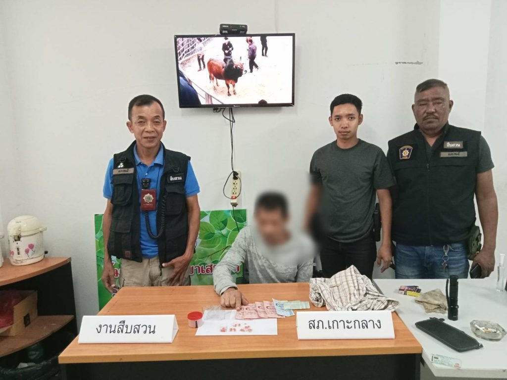 วันที่ 2 กุมภาพันธ์ 2567 พ.ต.ท.ชาตรี พุธร้อย สว.สภ.เกาะกลาง .ภ.จว.กระบี่ สั่งการให้ ร.ต.อ.เกรียงไกร รักษา รอง สว.สส.สภ.เกาะกลาง ด.ต.ธนวัตน์ ธรรมราช ส.ต.อ.ธีรยุทธิ์ แก้วอนันต์ ส.ต.ต.สุรศักดิ์ ทับไทร ได้นำหมายค้น ศาล จว.กระบี่ ที่79/2567 ลงวันที่ 1 ก.พ.2567 ผลการตรวจค้น ได้ทำการจับกุม นายชัยยา สาระวารี อายุ48ปี บ้านเลขที่108 ม.7 ต.คลองยาง อ.เกาะลันตา จ.กระบี่ พร้อมด้วยของกลาง ยาบ้าเม็ดสีส้ม จำนวน 36 เม็ด เงินสด 570 บาท ถุงพลาสติกใสใช้สำหรับแบ่งขาย ยาบ้า จำนวน 6 ใบ โดยกล่าวหาว่า จำหน่ายยาเสพติดให้โทษประเภท1แมทเอมเฟตามีน(ยาบ้า)โดยมีใว้ในครอบครองเพื่อจำหน่ายโดยไม่ได้รับอนุญาต สถานที่เกิดเหตุ บ้านเลขที่108 ม.7ต.คลองยางอ.เกาะลันตา จว.กระบี่ โดยปฎิบัติ ตามพรบ.ป้องกันและปราบปรามการทรมานฯ ทุกประการ นำส่งพงส.สภ.เกาะกลาง ดำเนินการต่อไป
