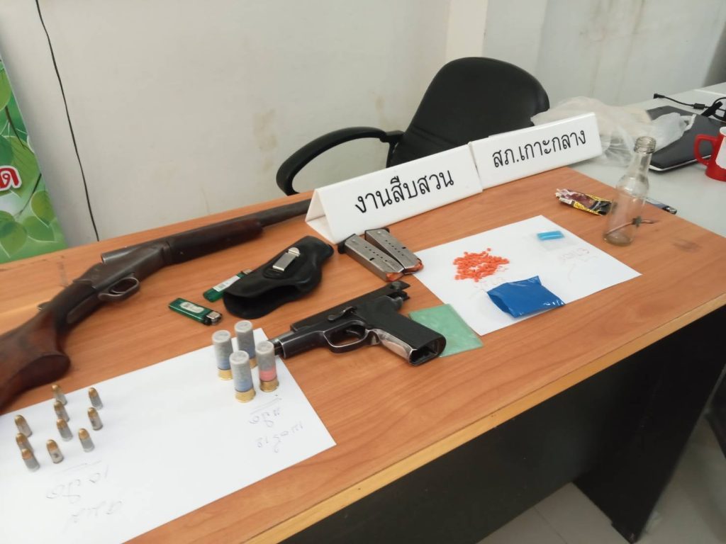 4.ปืนยาวชนิดลูกซองเดี่ยวนัดเดียว ไม่มีหมายเลขประจำปืนและหมายเลขทะเบียน จำนวน 1 กระบอก