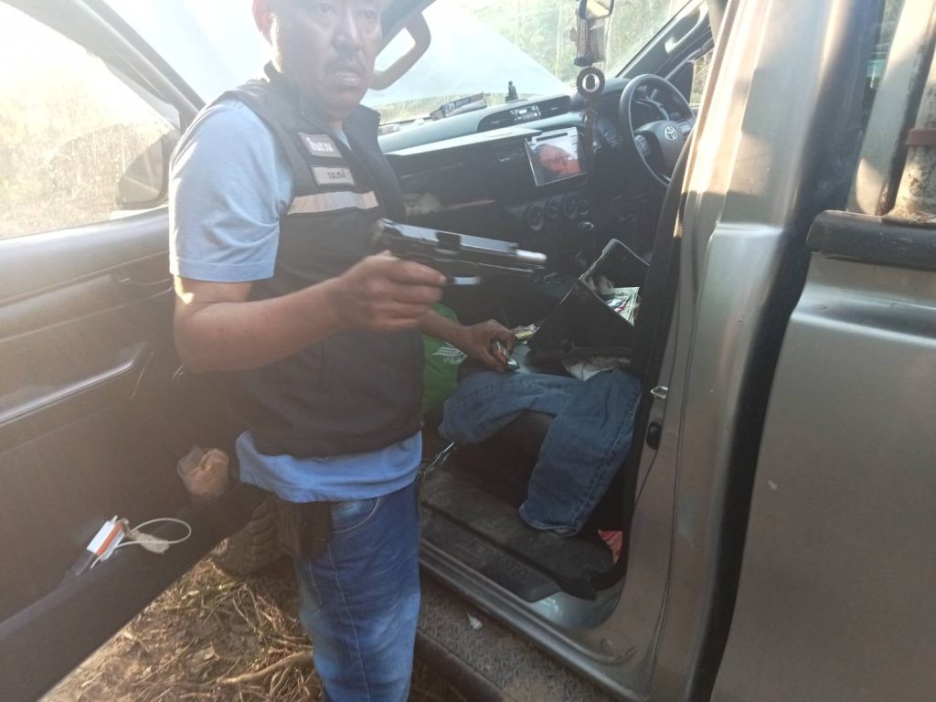 5.ปืนพกสั้นขนาด 9 มม.หมายเลขทะเบียน สข.05/3800184 สีดำ จำนวน 1 กระบอก